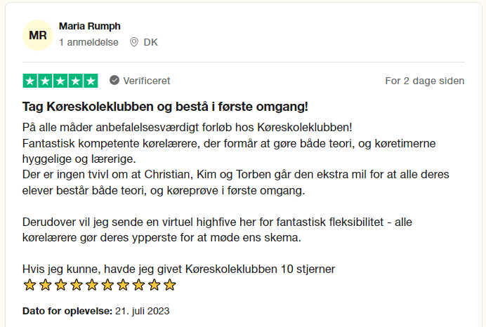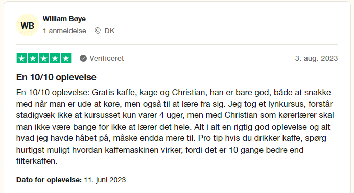 Når du har bestået din teoriprøve, været på glatbane og har haft minimum 16 køretimer, må du komme til køreprøve. Bemærk, at ikke alle kan gennemføre forløbet med kun 16 køretimer.